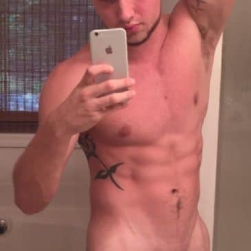 Muscular nude guy with a hard cut cock taking a nude self picture. What a gorgeous muscle chest